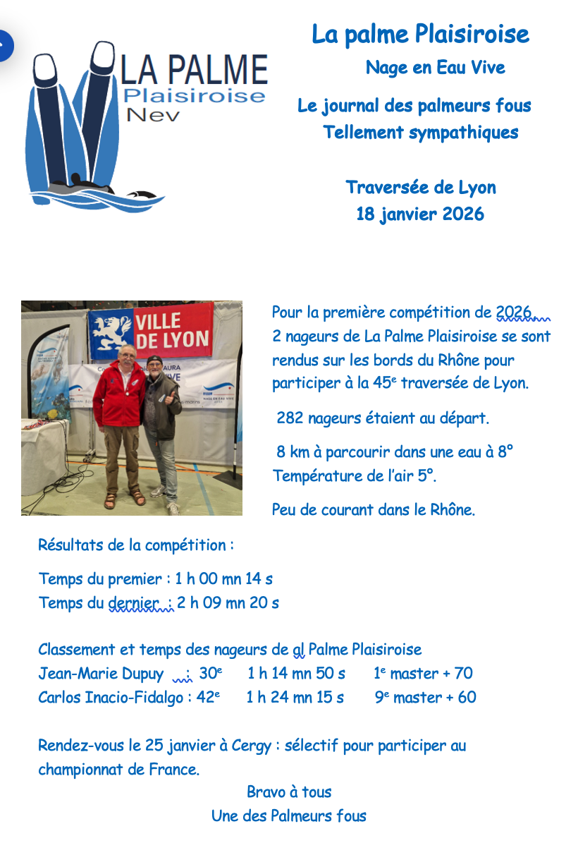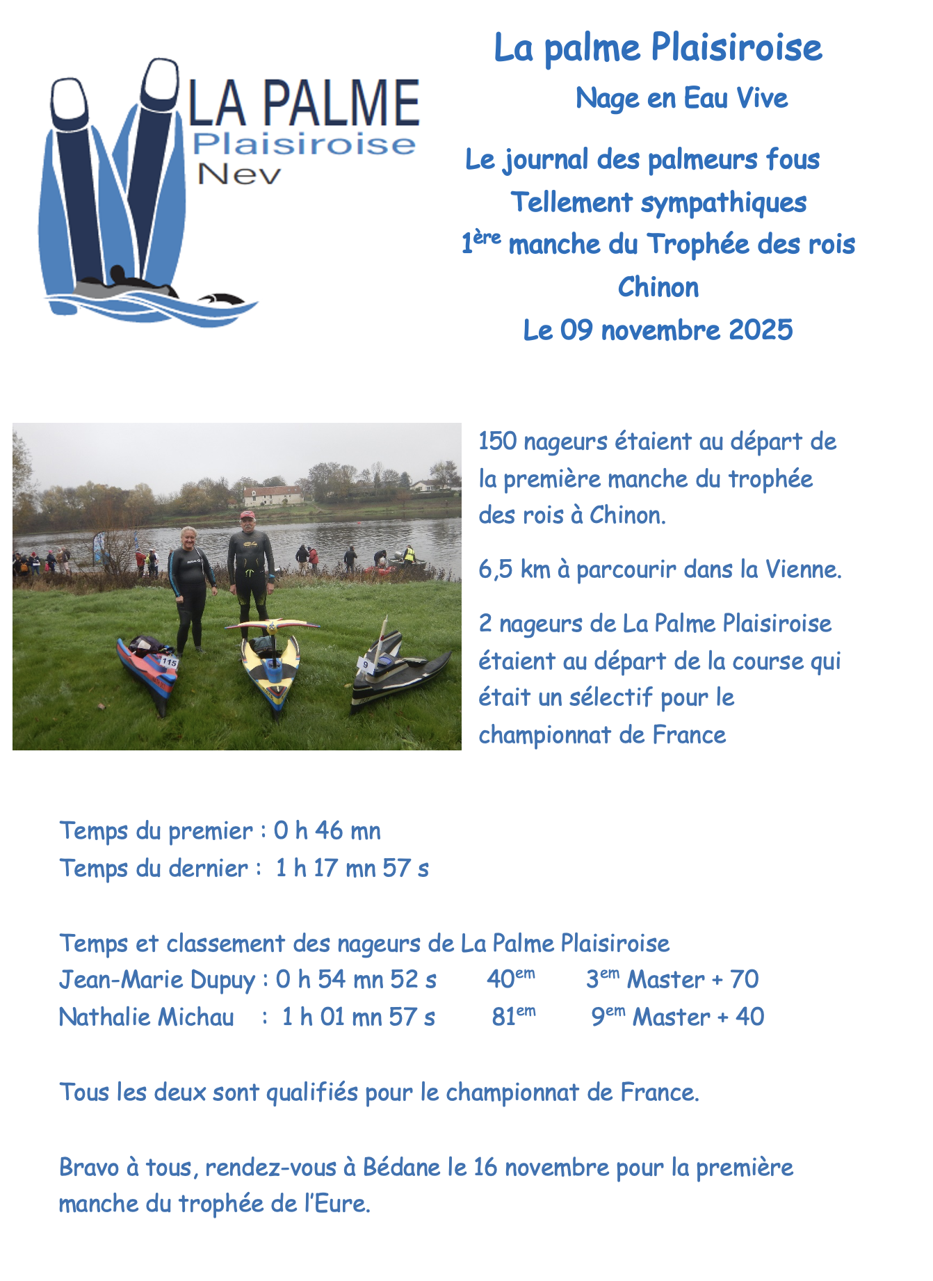 Une nouvelle saison démarre, votre club préféré : La Palme Plaisiroise vous invite à Cergy le 12 octobre 2025 pour la traditionnelle nage du Challenge Gérard Ridet - Trophée Téo.
