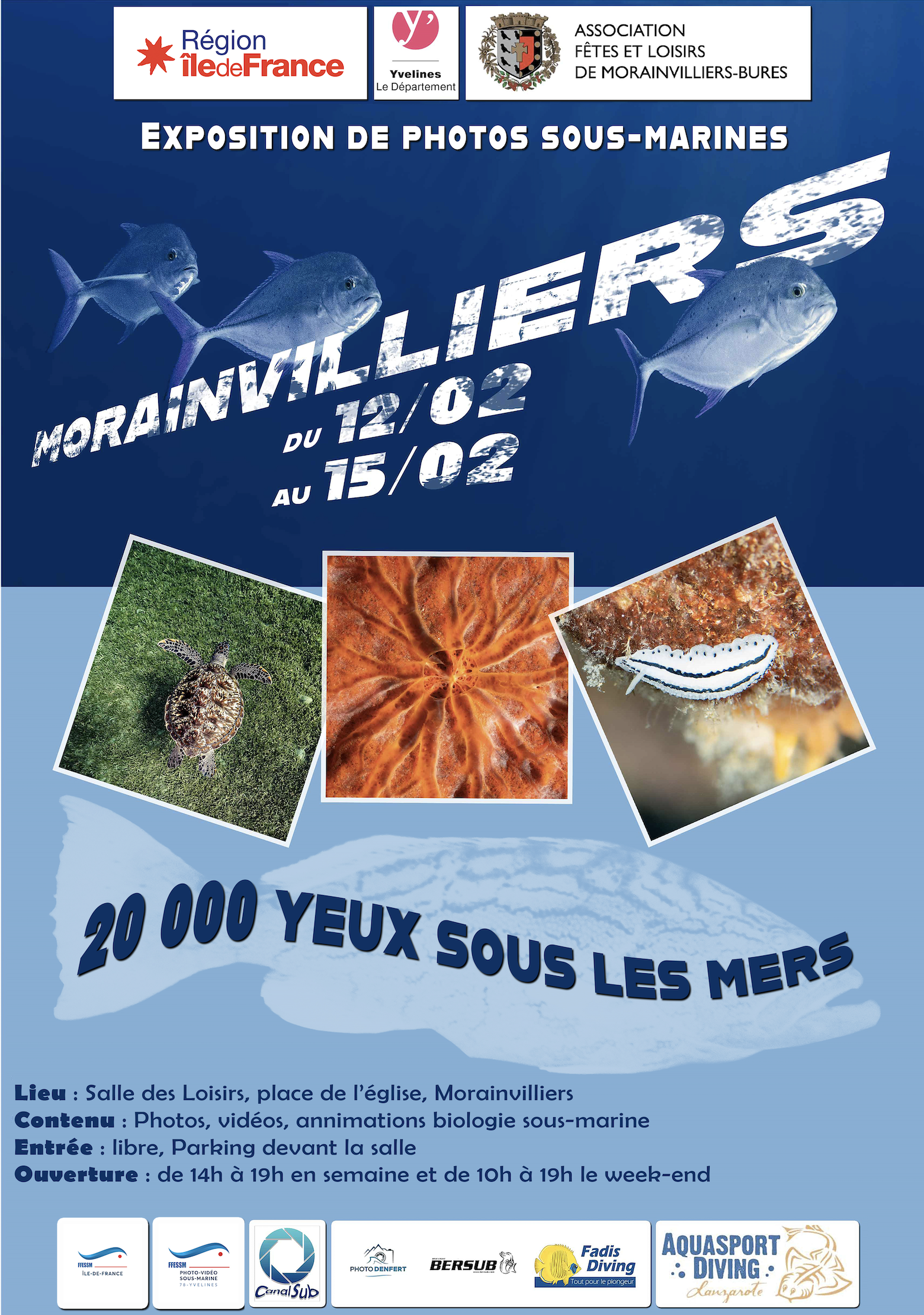 Communication de la Commission Départementale FFESSM photo vidéo 78 concernant l'organisation d'une exposition photos et vidéos en février 2026 à Morainvilliers.